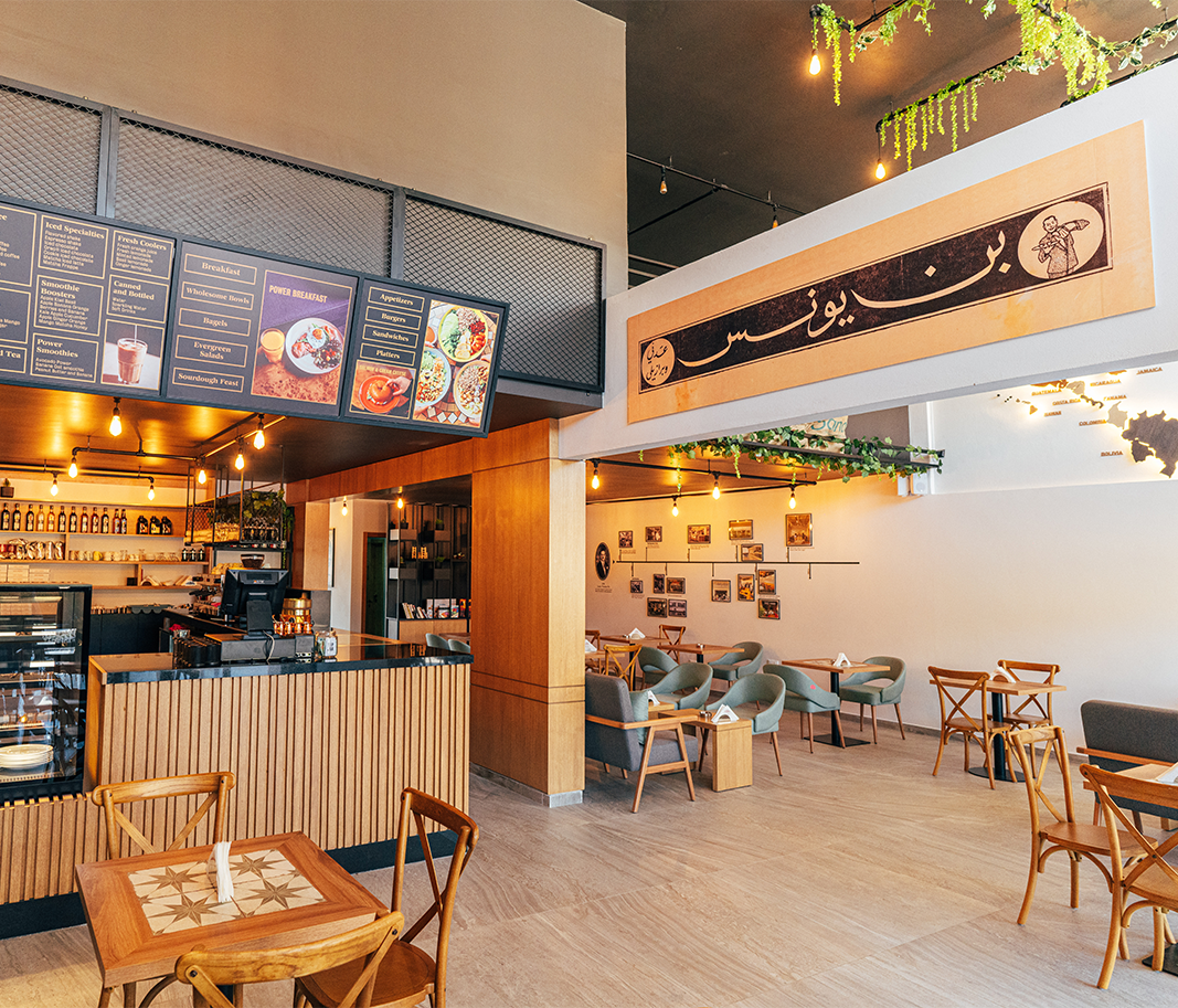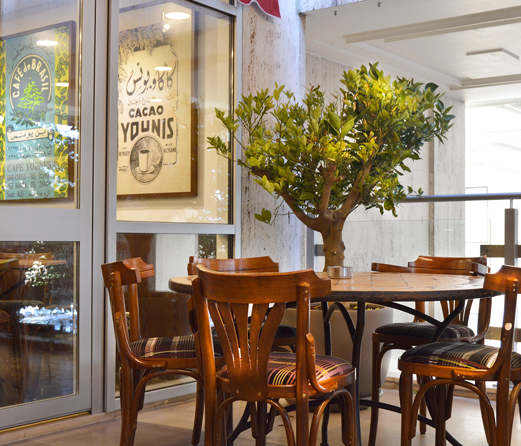 Passionate about delivering the taste of authentic coffee to its customers wherever they are, Café Younes is the first coffee house to reach the “premises” of doctors and patients. Earning its position as part of AUBMC, a leading medical center and healthcare institution in the region with the highest standards of patient-centered care and academic innovation, Café Younes serves the hospital’s staff, visitors, and patients through a relaxing coffee concept established inside the center.Designed with an outdoor terrace and a vertical garden beautifully embellished by plants and old trees, the coffee shop is a pleasant escape to the senses and an enjoyable stop for anyone looking for a comforting cup of coffee or a quick tasty bite.